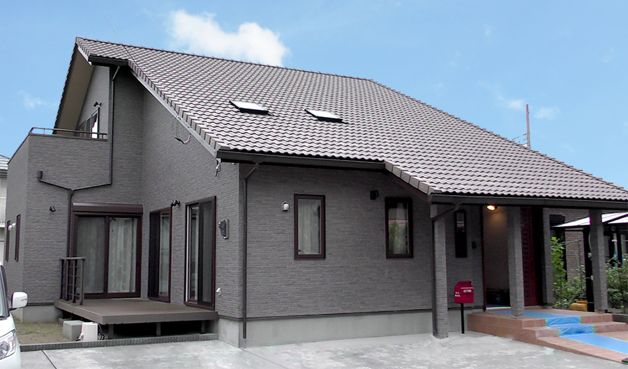 吹き抜けとアイランドキッチンのある回遊型平屋住宅です。
